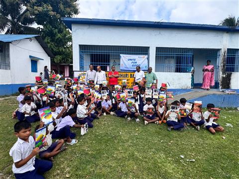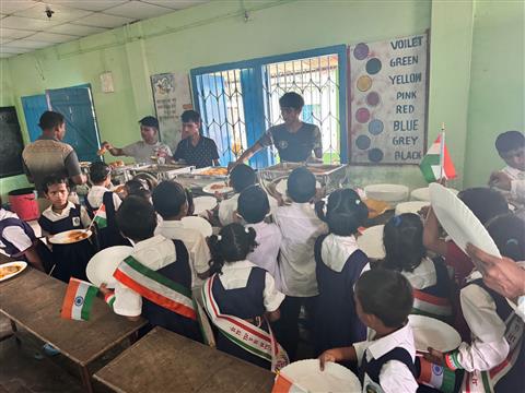 A special lunch for all teachers and students of Bihari School. •. . .